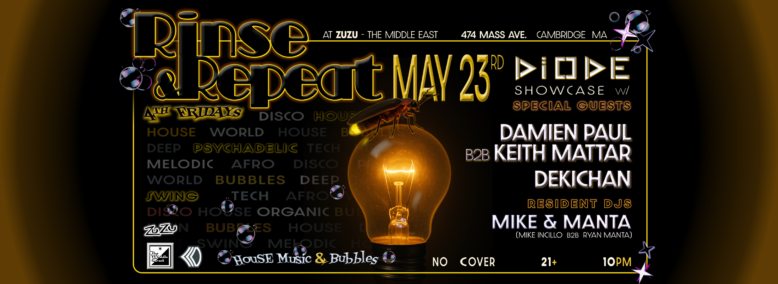 Rinse & Repeat is a monthly dance party created to rinse away your stress to make room for silly antics and good ol’ fashion debauchery to the tune of sweet sweet house music.